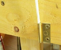 Use a pin punch (or nail) to knock out the pins from the hinges. Fix to the side of the front of the layout approximately ever 2ft (600mm). Either use the hook as a landing point, or if the other side is accessible, use another hinge socket, if its a wall, simply drill a small hole in line with the front socket.