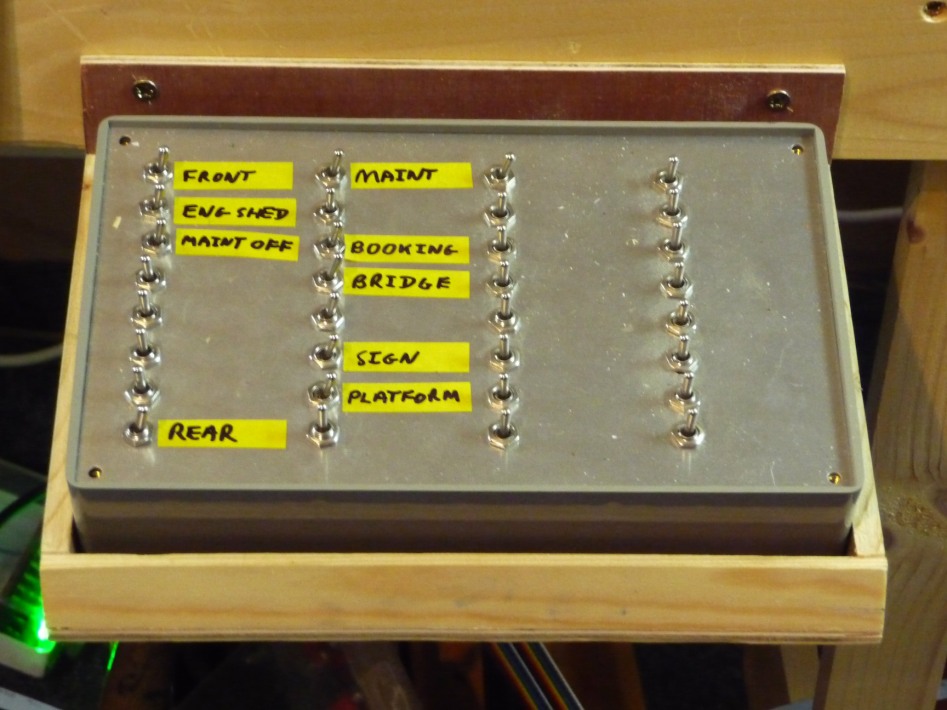 Controls will consist of 4 control panels. One small “power” panel will be mounted above the boosters to display control condition. One will be a small “Action” panel, with switch banks to control everything but the track. There will be two “Mimic” panels that will Graphically represent the track junctions and have point switches, point direction indicators, block occupancy indicators. One for phase 1 mounted below the middle board and the other mounted above the main board. Panels will be de-mountable and all internal wiring soldered and fed to sockets at the rear.