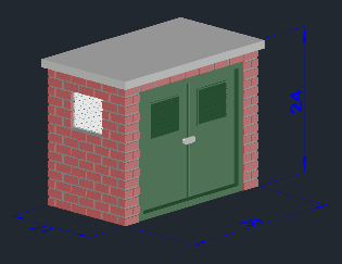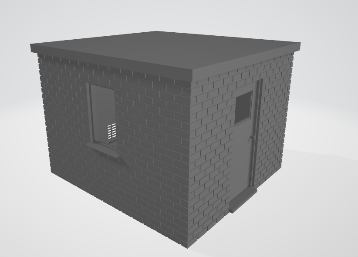 Brick built meter house building with concrete roof, two vents, one at each side. For oil, gas, sewage, etc.