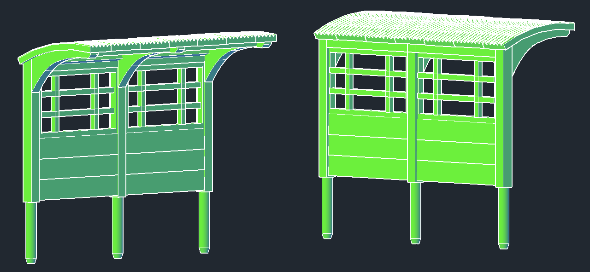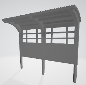 A prefabricated concrete bus shelter with corrugated asbestos roof