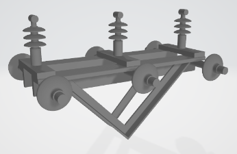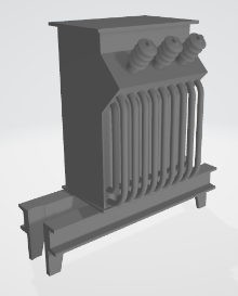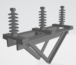 A three phase power transformer with insulator bar, 11Kv disconnects and 400V isolator/fuses