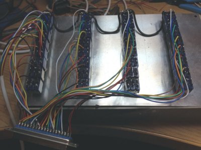 My intent is to have a on/off/on switch per channel, giving permanently ON (test/manual), OFF, and ON (Auto controlled by PC). Housed in a small control panel box, the outputs will be connected to a 37 pin D Sub connector (detachable from layout for testing, moving, rework, etc)