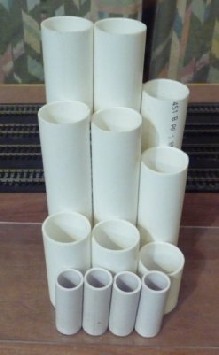 Source tubes by collecting toilet rolls, kitchen wrap/foil rolls, post tubes or other.