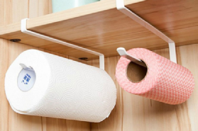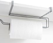 Kitchen towel can be help in a cheap plastic holder or strung on a wooden (or metal or plastic) bar from a shelf or below the bench